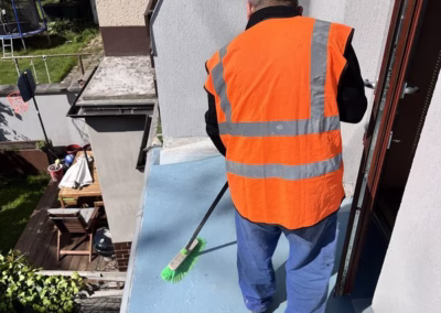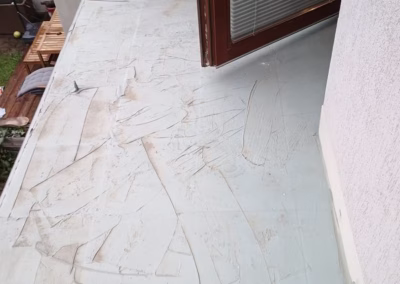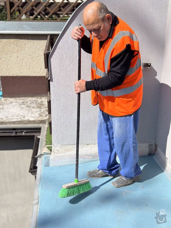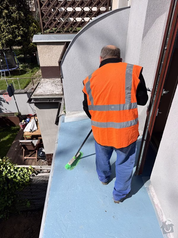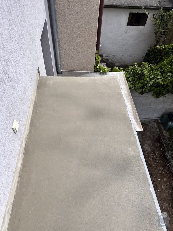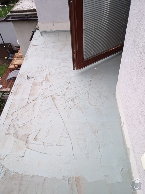 Zároveň však nutně potřebujeme zaizolovat povrch balkonu nad wc, který začal po navrtání nového zábradlí propouštět vlhkost do místnosti směrem od stropu, kde se objevila plíseň. Zábradlí jsme sundali a povrch balkonu provizorně natřeli tekutým plastem. Na balkón bude třeba po odstranění té stávající položit novou dlažbu a pod ni dát nějakou izolační vrstvu.