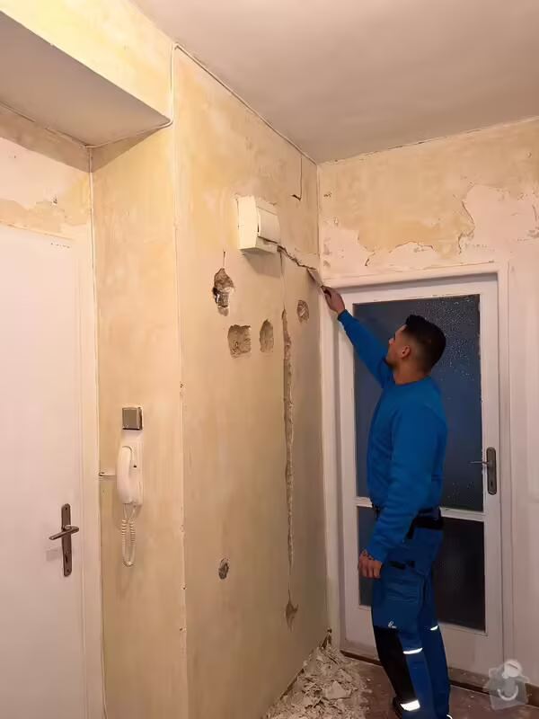 Akce se konala u Paní Šťastné v rodinném domě – vnitřní prostory. Částečná elektroinstalace dále vodoinstalace, zpevnění omítek a stropu. Byt jsem čerstvě koupil a chci aby byl co nejdříve rekonstruovaný.