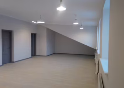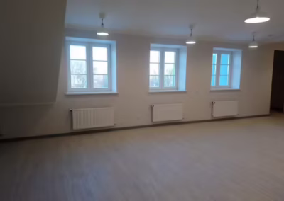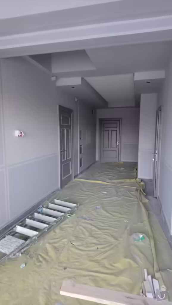 Dále se prováděla elektroinstalace , včetně nové obložení obkladů i dlažby v koupelně i montáž nové sanity. Nové omítky včetně stropu a ruční výmalby na perleťově bílou. Dále podlahy : pokládka vinylu a jejich izolace. Včetně lišt kolem obvodového zdiva až po finální uklid.